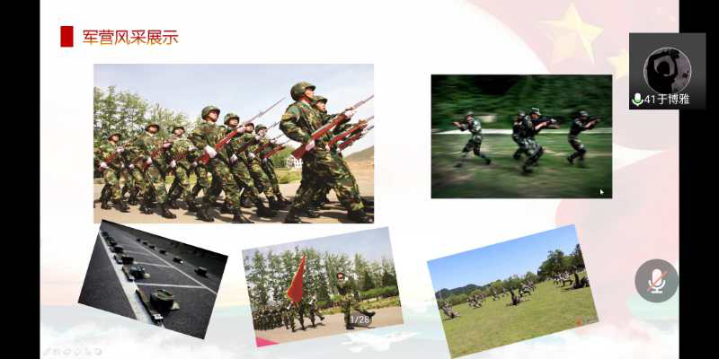 为解答很多女同学对女兵待遇的疑问,于博雅同学作为女兵代表给大家排忧解难,她表示,在部队中女兵和男兵几乎没有差别,会有着同等强度的训练。两年的军旅生活不但没有令她有过丝毫的后悔,反而收获了几份难得的战友情。从她所展示的PPT中不难看出她对军旅生活的怀念。她认为:要做一个有追求的中国人,青春不止眼前的潇洒,还有责任与担当!