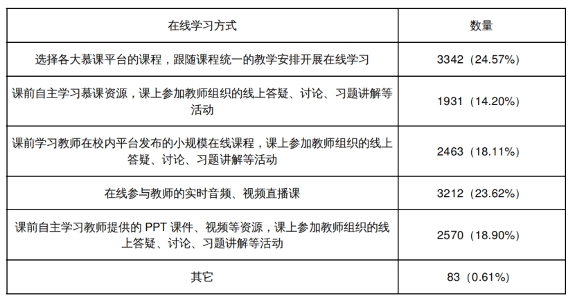 为贯彻落实教育部及省教育厅“停课不停教、停课不停学”的有关要求,确保教学秩序稳定、教学质量不降,最大程度消除疫情防控对教学工作的影响,学院相继制定并颁布了《关于做好2019-2020学年第二学期延期开学期间教学预备工作的通知》及《国产一区二区日本在线2019-2020学年第二学期延期开学期间在线教学组织与管理工作方案》,从教学计划安排、教学过程管理、教学质量监控、教学效果反馈等诸多方面进行了周密部署,为线上教学工作的开展保驾护航。近期,结合我院配合教育部高教司开展的全国高校在线教学开展情况调研结果,形成本报告,请各系部及时向师生反馈本报告,助力学院整体教学质量持续攀升。