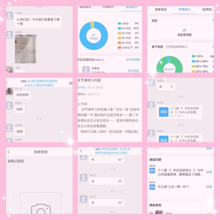 自接到教务处下发的《教务处关于开展2019-2020学年第二学期期中线上教学检查工作的通知》,思政部刘彦清主任主持召开了期中线上教学检查工作部署会议,会上思政部全体教师集中学习了文件内容,成立期中线上教学自查小组,分别从教师线上教学平台使用情况、教师线上课程开展情况、教师对听课制度执行的情况及教师的教学资料准备情况进行检查。通过检查,思政部全体教师都认真完成了教学任务及教学进度,线上教学效果良好。对于检查过程中发现的问题,思政部教师进行了认真的整改。