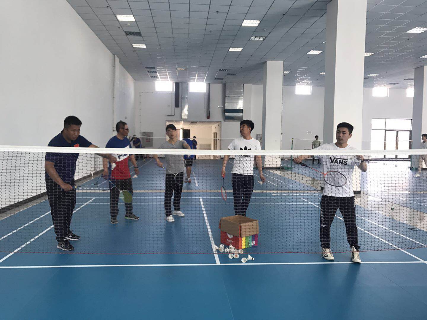 随后体育老师们开始进行双打比赛,将刚才的经验交流运用于实践当中,并在比赛过程中展示各自特长与技术,共同讨论研究如正手吊球技术、正手劈吊球技术、正手推球技术、反手挑高球技术等知识点的教学方法与讲授技巧。通过本次羽毛球教研活动,体育教师们能够在研讨中夯实教学基础,在学习中提高教学水平,在交流中提升教学技能。此次教研活动将有效促进学院的体育课堂向着更加规范、专业、高效、有序的方向前进。
