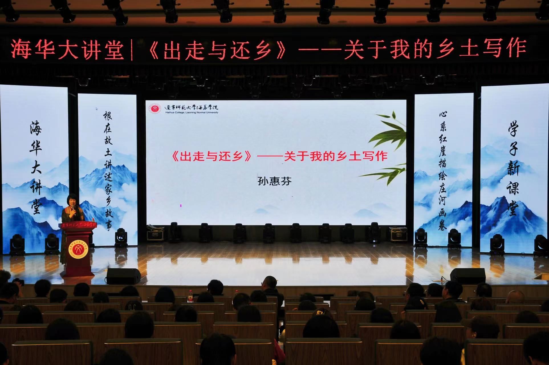 10月31日,我校举办“海华大讲堂”系列讲座第三讲,邀请国家一级作家、中国作协全委会委员、辽宁省作家协会副主席孙惠芬作为主讲人,以“出走与还乡——关于我的乡土写作”为题带领师生一起走进她的文学创作天地。院长助理王树海、庄河市作家协会主席周美华、部分协会代表和200余名师生共同聆听了讲座,讲座由中文系主任郑丽娜主持。