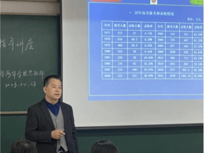 会议邀请我校科技处处长孙占如教授作专题报告。孙处长就毕业面临的人生选择和考研方向两个主题给思政部的同学们进行专业辅导。关于人生选择方面,孙教授讲到了人生的两次选择,第一次人生选择是高考后的选择,第二次人生选择就是现在,面对就业、考公、考研等多条人生道路,一定要选择一条适合自己的人生道路。他强调:第一次的选择铸就了现在,我们好好规划第二次选择。关于考研方向,孙教授向同学们阐述了疫情之后经济复苏下大学生的就业前景,研究生的就业前景,为我们理清了考研的动机,为我们讲解了考研的学习重点。通过生动事例和详实数据分析,让大家认清当前的考研形势,启发鼓励同学们确定目标,坚定信心,并就如何择校选专业、如何准备研究生各阶段考试、如何安排学习时间做出指导。