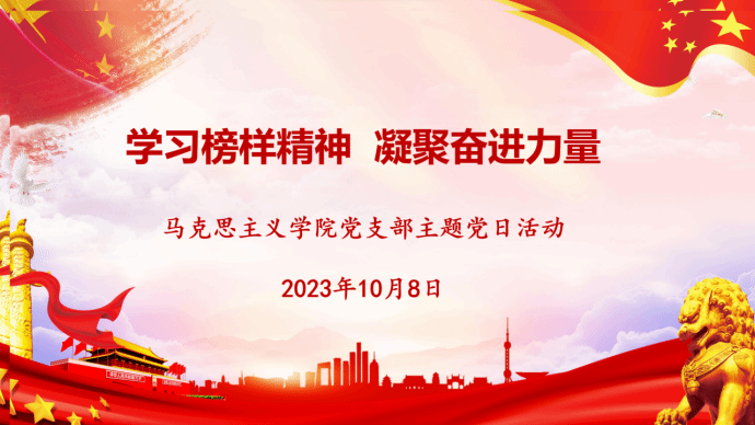 为深入学习贯彻习近平新时代中国特色社会主义思想和党的二十大精神,充分发挥先进典型示范引领作用,学习榜样精神,传承榜样力量。马克思主义学院党支部于2023年10月8日下午举行特色党日活动“学习榜样精神,凝聚奋进力量”。