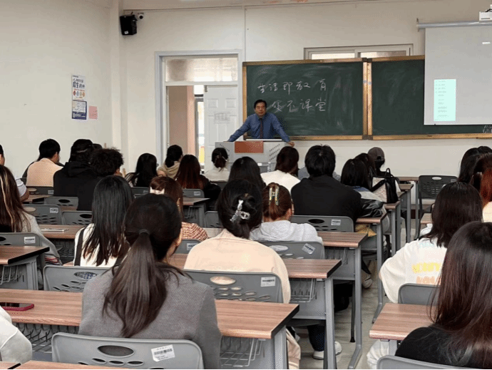 最后栾美晨教授以“生活即教育,无处不课堂”为题来进一步深化本次讲座主题,希望2021级同学们用积极的学习行动将自己的人生”装订“得更加漂亮。