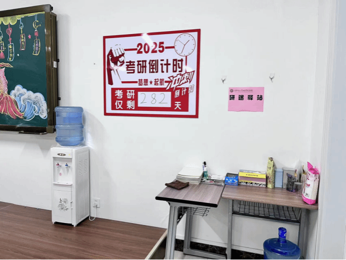 考研自习室的设立,旨在为考研学生营造一个良好的学习环境,提高管理系学子考研积极性、主动性,不断提升考研学生的综合素养,为其成功考取研究生提供保障。考研自习室将全天开放,自习室内精心设置了文化建设标语,给学生以精神鼓舞、激发学习的斗志。内部设置电源插座、无线网络、饮水机等设施。专门设立“研途驿站”内含学习用品、茶与咖啡等物品以供备考期间学生能量补充,极大的满足了考研学生的备考需求。